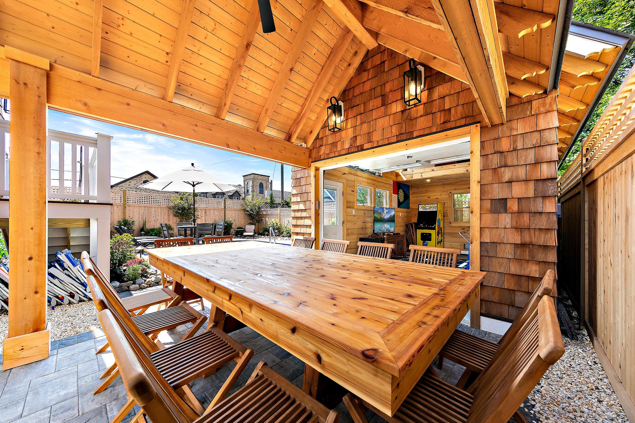 Featuring eight bedrooms, five full baths, and one half-bath, this residence comfortably accommodates up to 19 guests. Discover three en suites with king beds, one on the first floor and two on the second floor. The remaining two bedrooms on the second floor each offer a queen bed and share a hall bath. Ascend to the third floor and find three bedrooms – two with queen beds and the third with five twin beds – all sharing a hall bath.
